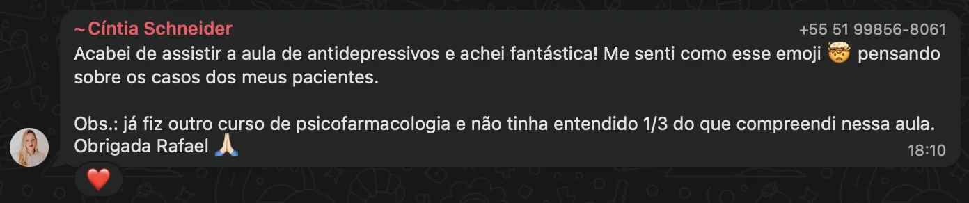 Aprenda psicofarmacologia a partir de casos clínicos reais do seu consultório e ganhe segurança para falar de medicação com seus pacientes, sem sair da sua área de atuação.