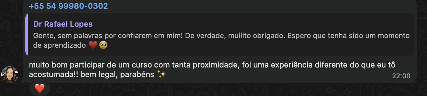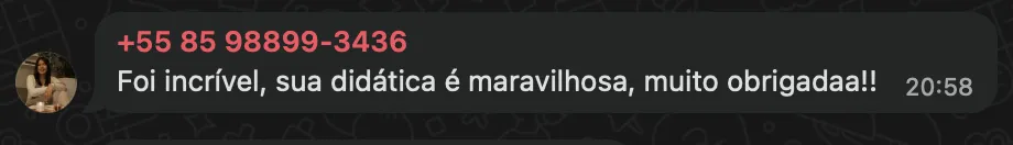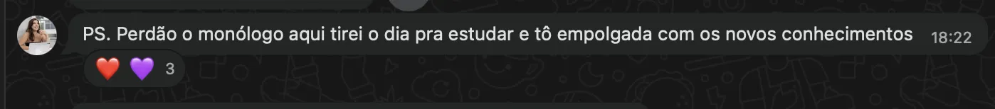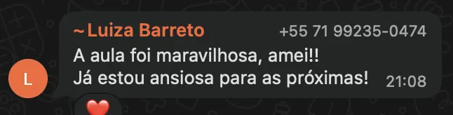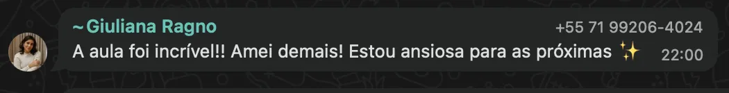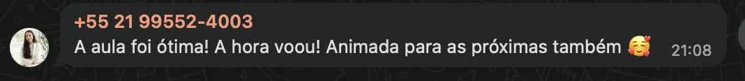 Você recebe o link do Zoom por e-mail e também no grupo exclusivo de WhatsApp (você entra após confirmar sua inscrição). Recomendamos entrar com 5 minutos de antecedência.