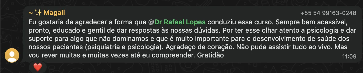 Sim, 100% gratuita. Basta se inscrever preenchendo o formulário e você receberá o link do Zoom no seu e-mail e WhatsApp. Como bônus, você também recebe o e-book Desmistificando os Psicofármacos.